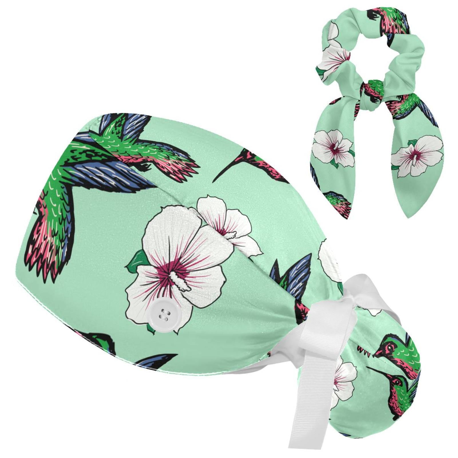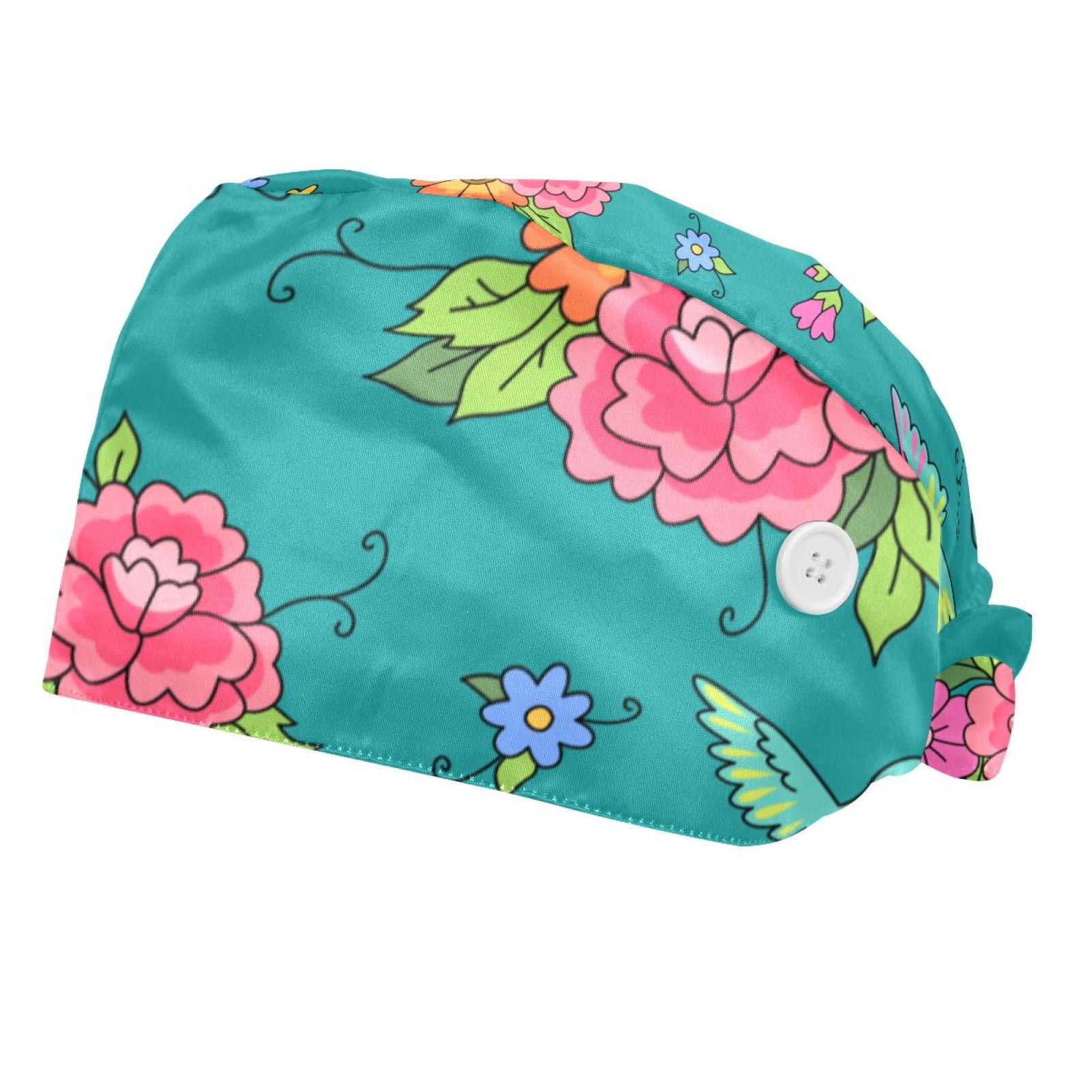 Working Cap With Buttons And Sweatband Scrub Hat Bouffant Caps With Scrunchie Hummingbird Tie Back Hats Walmart Com